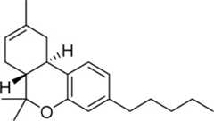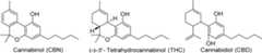 Structures of cannabinol, Δ9-THC, and cannabidiol.