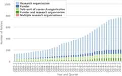 “Data are broken down by policymaker type: funder (e.g. Wellcome Trust), joint funder and research organization (e.g. British Heart Foundation), multiple research organizations i.e. associations and consortia (e.g. Max Planck Society), research organization i.e. university or research institution (e.g. CERN), and subunit of research organization (e.g. Columbia University Libraries).”