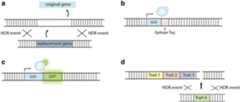 The second DNA repair pathway is homology directed repair (HDR) which relies on template DNA. Homologous recombination is an important process that occurs in somatic cells to repair DSBs and in meiotically dividing cells to exchange genetic material between parental chromosomes. The most common conservative HDR mechanism in plants, which repairs almost all DSBs in somatic cells, is the synthesis-dependent strand annealing (SDSA) pathway [4,8] (Fig. 1c). As a DSB occurs, 3′ overhangs are extended from the break site. A 5′ end invades the homologous strand forming a D-loop. Synthesis fills in the gaps using homologous DNA as a template, and the 3′ end reanneals with the second 3′ end without crossover. The result is a precisely integrated template or “donor” DNA strand. In nature, template DNA in the form of a sister chromatid or homologous chromosome is not always available, which may hinder HDR. However, synthetic template DNA can be provided exogenously and used for gene insertion, replacement, or epitope/florescent tagging. There are many exciting applications in basic and applied science using HDR. For example, HDR was used to engineer an herbicide resistant trait in tobacco plants [9].