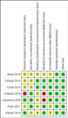 1Downgraded one point due to risk of bias (all studies have at least two domains at unclear risk of bias with none of the studies at low risk of bias in all domains). 2Downgraded one point for imprecision due to small sample size (< 400 participants) and wide confidence intervals.