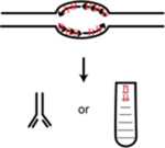 | DNA combing | Fluorescently label nascent DNA. DNA molecules stretched and aligned along a slide and visualized by various fluorescence microscopy techniques | Bensimon et al.,265; Michalet et al.,266; Pasero et al.267. | ![]() | |