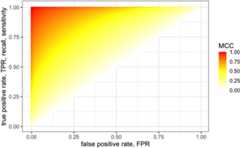 The key asset of the MCC is that its high value always corresponds to high values for each of the four confusion matrixbasic rates: sensitivity, specificity, precision, and negative predictive value [4]. No other widespread confusion matrix statistic has this feature, although recently novel measures exploiting such property has been proposed [18,19].