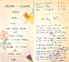 Scottish Thistles played against England, and Wales again as part of the Festival of Britain, also referred to as the International and Commonwealth Festival in Birmingham. We lost to England 3-32 and to Wales by 13-15.