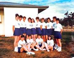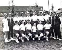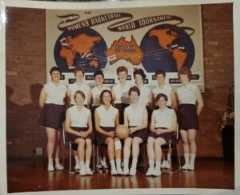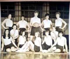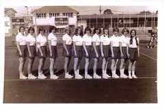 Back row l-r:Emelia Calder #106, Elizabeth Ann (Fan) Hutchison (Church) #73 Coach, Ann Duff (Murphy) #96, Margaret Reid (Dolan) #97, Marie Fairie #59, Betty Denney (Stone) #93, Liz Kerr Umpire