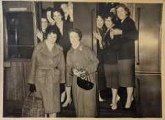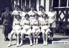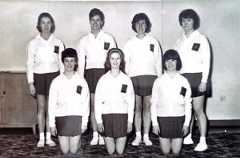 Back row l-r:Alexandra (Sandra) Frame (Trainer) #109, Christine Stanley (Donnelly), Caroline Downie #113, Joan Thomson #112, Mary Biggins #86, Mary McGinn (Gibbons) #99, Jane Elliot (Lavery) #85