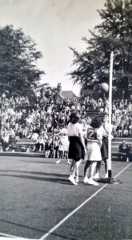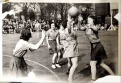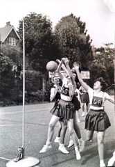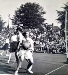 Nan Miller (Hoggan) #25 achieved two caps playing netball for Scotland in 1954. She was an Attack player, this position is now called Goal Attack. She was introduced to netball at Notre Dame High School and loved it. According to Nan the players all had to makes their own playing tunics; someone bought a pattern and the material, and they all sewed them. Nan played in our first match against Wales and England which was played at Cathays High School, New Zealand Road in Cardiff. Scotland lost to England by 4-29 and also lost to Wales by 10-15. It’s likely that the matches were two halves of 20 minutes at this time.