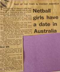 We know that we played in Glasgow, we won by 21 goals to 7 and the NI shooter Miss Peggy Curran had to go off injured in the first five minutes. According to the press she injured her ligaments and had to be flown home, we guess the rest still went home by boat.