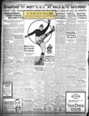 Can This Giant Put the Trojans to Flight? Whether or not Stanford succeeds in defeating the University of Southern California Trojans at the farm Saturday depends largely upon the work of Coach Andy Kerr's giant fullback star, ERNIE NEVERS. Rated as one of the best plunging backs on the -coast this year, a sweet punter and a general all-around backfield star, Nevers is pronounced by critics as the backbone of the Stanford offense. Local fans will pass Inspection on. Nevers in action Saturday.