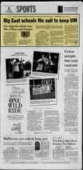 "We think it would be particularly useful for people to take some time and slow this process down.' - CHARLES STEGER, Virginia Tech president Big East schools file suit to keep UM Five desperate schools wage Citing the Hurricanes' promises to stay, the legal charges a conspiracy designed to 'destroy' the War of Roses (and Oranges) Even as nasty divorces one's getting uglier by the It's b becoming increasingly cult : to figure out how much Big East Conference loves versity of Miami and wants go, this day. diffithe the Unithe Greg Stoda Greg Stoda Hurricanes to remain in the marriage, or how much five of its ie if you could work about-to-be-jilted member insitu- emotional wickedness tions hate the Hurricanes and want husband and wife digging to make them pay for giving up on against each other on the union. a fight to their deaths. This is bigger than The War of the Roses, a hysterically funny mov- See By JORGE MILIAN Conn. Syracuse, one of the three Palm Beach Post Staff Writer schools considering leaving the CORAL GABLES - For weeks, Big East, was not named because talks had remained cordial be- the plaintiffs found no evidence the tween the Big East and the three school made promises to stay in schools contemplating leaving for the conference. the Atlantic Coast Conference. The suit seeks unspecified That changed Friday when five damages, charging that UM, BosBig East schools filed a lawsuit ton College and the ACC conaround the against the University of Miami spired "on a scheme that is calcu- about a and Boston College, seeking to lated to destroy the Big East and in keep them from defecting. misappropriate its value for their what became The ACC also was named as a benefit.' defendent in the lawsuit filed in The plaintiffs are the five STODA, 10B P state Superior Court in Hartford, schools left behind in the ACC's action conference. proposed expansion - Rutgers, West Virginia, Virginia Tech, Connecticut and Pittsburgh. They contend that UM "made repeated public and private statements . that it intended to remain a member of the Big East and that it had no intention of leaving to join any other conference." Those assurances, the lawsuit states, were made while UM and BC were "engaged in secret negotiations to leave the Big East to join the ACC." UM Athletic Director Paul Dee declined to comment on the specifics of the lawsuit but said the university had done nothing wrong. See BIG EAST, 10B >