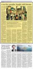 Clenfield, Jason; Alpeyev, Pavel; (19 June 2014) A Tax-Free Paradise, Bought with Bitcoins. Chicago, Illinois: The Chicago Tribune, p 2, Section 2