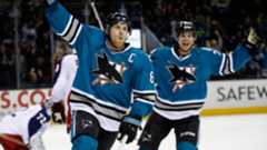 The specialty single season uniform only worn on select dates (Oct. 30 vs. Devils, Nov. 20 vs. Kings, Dec. 3 vs. Capitals, March 1 vs. Jets) with each game spotlighting a different Sharks Alumni group.