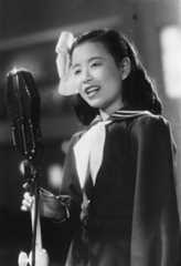 Indeed, the title of the 1949 film in which Hibari made her juvenile motion picture debut wasNodo jiman kyō jidai (The Amateur Hour Age). In that movie, Hibari flaunted her precocious talents by performing Kasagi Shizuko’s hit “Tokyo Boogie Woogie” with a sophistication and flair few adults could rival. (The headline of an enthusiastic newspaper article by Hibari booster Satō Hachirō—the man responsible for the lyrics of “Ringo no uta”— dubbed her the “boogie woogie kid.”)