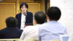 バナー写真:全国霊感商法対策弁護士連絡会で話ジャーナリスト鈴木エイト氏(2022年9月、東京都千代田区)(時事)