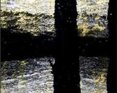 The movement of cypresses in Rovner’s work resonates with the view from library windows, and at the same time is an expression of social and political drama. The artist photographed the tall, slim trees in the Old City of Jerusalem, transformed the background into rocky terrain, and added brushstrokes and painted golden light. The cypresses define territorial divisions, traversed by a never-ending procession of nomads, migrants, refugees, or, at best, travelers in time and place.