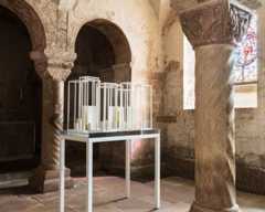 sukkah pays homage to the Jewish ghetto of Venice, the first in the world. De Waal exhibited the work in one of the Venetian synagogues, in the framework of an art initiative that he dedicated to exile and immigration. sukkah is made up of nine transparent boxes, reminiscent of the high buildings in the ghetto. Each box contains characteristic materials of Venetian architecture. A sense of fragility and decline from greatness into ruin emerges from the work. It suggests the transience of exile, and evokes the shelters (sukkot) that the Children of Israel erected in the desert as way-stations on the long odyssey that followed their hasty exodus from Egypt. Another work by de Waal is located on the entrance floor of the library.