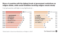 In the coming decades, Jews are not expected to increase as a share of the population in any region of the world. In the Middle East-North Africa region, for example, about 1.6% of the population identified as Jewish in 2010; 1.4% of the region’s 2050 population is expected to be Jewish. Although the Jewish share of the Middle East and North Africa is projected to decline, the absolute number of Jews in the region is expected to rise from 5.6 million in 2010 to about 8.2 million in 2050.