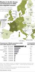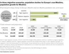 Even if all migration into Europe were to immediately and permanently stop – a “zero migration” scenario – the Muslim population of Europe still would be expected to rise from the current level of 4.9% to 7.4% by the year 2050. This is because Muslims are younger (by 13 years, on average) and have higher fertility (one child more per woman, on average) than other Europeans,mirroring a global pattern.