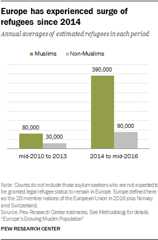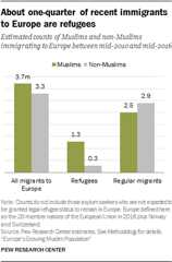One source of uncertainty is thestatus of asylum seekers who are not granted refugee status. An estimated 3.7 million Muslims migrated to Europe between mid-2010 and mid-2016, including approximately 2.5 million regular migrants entering legally as workers, students, etc., as well as 1.3 million Muslims who have or are expected to be granted refugee status (including an estimated 980,000 Muslim refugees who arrived between 2014 and mid-2016).