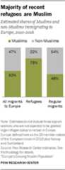 After Syria, the largest sources of recent refugees to Europe are Afghanistan (180,000) and Iraq (150,000). Again, in both cases, nearly all of the migrants from these countries were refugees from conflict, and overwhelming majorities from both places were Muslims.