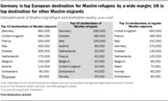 Combining Muslim refugees and Muslim regular migrants, Germany was the destination for more Muslim migrants overall than the UK (850,000 vs. 690,000).