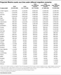 These are a few of the key findings from a new Pew Research Center demographic analysis – part of a broader effort to project thepopulation growth of religious groups around the world. This report, which focuses on Muslims in Europe due to the rapid changes brought on by the recent influx of refugees, provides the first estimates of the growing size of the Muslim population in Europe following the wave of refugees between 2014 and mid-2016. It uses the best available data combined with estimation and projection methods developed in prior Pew Research Center demographic studies. The projections take into account the current size of both the Muslim and non-Muslim populations in Europe, as well as international migration, age and sex composition, fertility and mortality rates, and patterns in conversion. (See Methodology for details.)