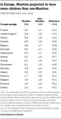 The difference between Muslim women and others varies considerably from one European country to another. In some countries, the disparity is large. The current estimated fertility rate for Muslim women in Finland, for example, is 3.1 children per woman, compared with 1.7 for non-Muslim Finns.6