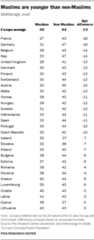 As of 2016, France and Germany have the greatest age differences in Europe between Muslims and non-Muslims. The median age of Muslims in France is just 27, compared with 43 for non-Muslims. Germany has an equally large gap (31 for Muslims, 47 for non-Muslims).