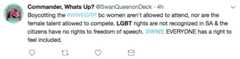 Fans have expressed their disappointment over the lack of women wrestlers and the significance of the location for LGBT+ fans alike, with one fan saying they are “torn” over watching the landmark event.