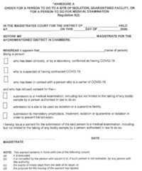 Provided that if a person does not comply with the instruction or order of the enforcement officer, that person must be placed in isolation or quarantine for a period of 48 hours, as the case may be, pending a warrant being issued by a competent Court, on application by an enforcement officer for the medical examination contemplated in paragraph(a)." .