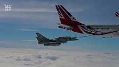 Voyager is the RAF's only Air-to-Air Refuelling (AAR) tanker and also supports Strategic Air Transport. Based on the Airbus A330-200, it comes in two versions: the KC Mk2 with two refuelling points and the KC Mk3 with an additional centerline hose for refuelling larger aircraft. Fuel is stored in existing tanks, leaving the cabin available for up to 291 passengers and the cargo hold for freight. One Voyager is modified for long-range VIP transport but still functions as a fully capable tanker.
