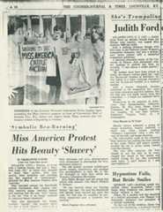 "I also attended the Atlantic City Beauty Contest protest, which was the best fun I can imagine anyone wanting to have on any single day of her life. It was very brazen and very brash, and there were some arrests—Peggy Dobbins was charged with releasing a stink bomb. No bras were burned, though; that was a media invention..." —Flo Kennedy,Color Me Flo: My Hard Life and Good Times, 1976 ![]() | |