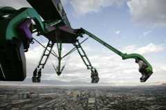 It’s The Stratosphere Tower’s Insanity ride. You know, the one that swings and spins you 64 feet over the edge of the tower 900 feet off the ground.