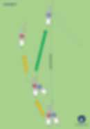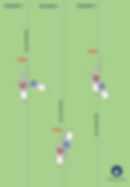 Example 4 shows a safe and successful ride off from the blue player. The red player is initially established on the Line of the Ball, the blue player approaches from the off-side of the red player, contacts the blue playershoulder to shoulder, at an angle less than 45 degrees, and forces the player to move away from the line of the ball. This manouvre, leaves the ball available for possession by another player and the Line of the Ball available for a player to establish themself on to it. In this example, the blue player pulls back out of the ride off and away from the opponent with enough space to establish him/herself on to the Line of the Ball and safely takes possession of the ball. This player has beaten his man and then won the ball and played a defensive, backhand.