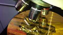 Below is a gold electroplated silicon wafer. Gold plating is one of the necessary steps in the production of microchips.