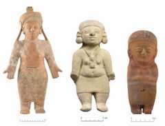 The earliest figurines date back to 3500 B.C., in what scholars call theValdivia culture. The hierarchical, agricultural societies of the Regional Development period then produced thousands of clay figurines, depicting people, animals, and mythical beings, as well as very delicate gold and platinum ornaments. The creation of figurines ended around A.D. 1500, with the arrival of Spanish conquistadors.