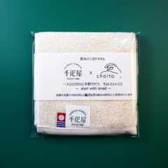 ゴミとして処分されていたフルーツパーラーで消費される紙パックをリサイクル、紙糸にして綿と編み込みハンカチタオルとして生まれ変わったものを商品化しました。