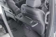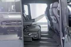 Second row occupants are treated to the best seats onboard - twin ottoman captain seats - which are four-way adjustable, and come with their own arm- and legrests. Other creature comforts here include manual sunshades, fold down tray tables (containing two cupholders each), as well as a roof-mounted control panel for the car's third climate zone. One noteworthy feature here is the fact that the rails on which the captain chairs run are neatly concealed by rubber seals.