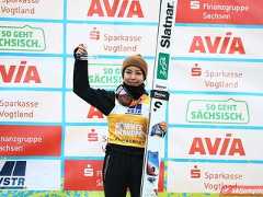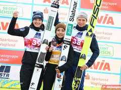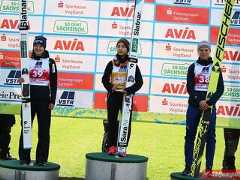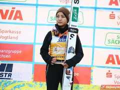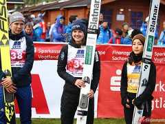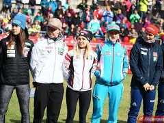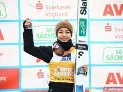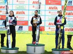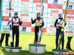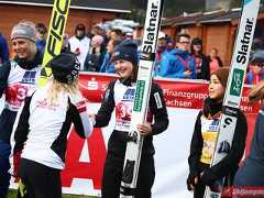 04.10.2018 - Podium klasyfikacji generalnej LGP Pań 2018 fot. Tadeusz MieczyńskiZaczyna sprawdzać się czarny scenariusz na finałowe konkursy Letniego Grand Prix 2018. Z powodu zbyt silnych podmuchów wiatru zawody pań na Vogtland Arenie (HS140) w Klingenthal zostały odwołane.