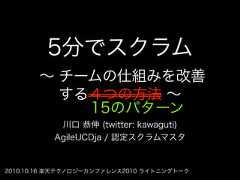 This document announces an Agile 2010 conference happening from December 7-9, 2010 in Japan. It provides biographies and links for two co-creators of the Scrum framework: Ken Schwaber and Jeff Sutherland. The document also shares principles and practices for building an effective Scrum culture including time-boxing, fast reporting, co-locating teams, focusing on one team, and continuous improvement.