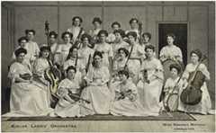 „Æolian Ladies’ Orchestra with their conductor, Rosabel Watson“, undat. Photographie.