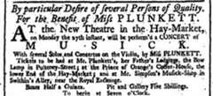 Konzertanzeige aus dem Daily Advertiser, 24. Febr. 1744.