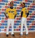黄色を基調とした新ユニホームのモデルを務めた選手会長の上本が「黄色を着るのは初めてで新鮮。虎のイメージにピッタリ合う。夏場のしんどい時期に着るのでバテずに耐えられるようにがんばりたい」と意気込めば、大和も「ユニホームより目立つプレーをしたい」と誓った。