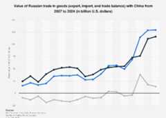 Merchandise trade value of Russia with China 2007-2024, by flow