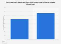 As of March 2025, the price of electricity used in households in Nigeria amounted to nearly 51 Nigerian naira per kilowatt hour, some 0.03 U.S. dollars. On the other hand, industrial electrical energy was priced at approximately 66 NGN per kilowatt hour, roughly 0.04 U.S. dollars.