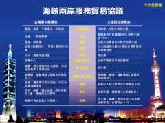 The cross-strait service trade agreement is a major follow-up to the Economic Cooperation Framework Agreement (ECFA) and the General Agreement on Trade in Services under the WTO.
