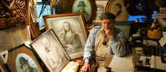Main image: Karl Sim, New Zealand’s best known art forger, with some of his copied artworks