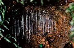 Glow-worms catch small flying insects on snares of sticky threads. These dangle from the roofs of caves or overhanging banks.
