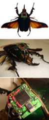 A giant flower beetle with implanted electrodes and a radio receiver on its back can be wirelessly controlled, according to research presented this week. Scientists at the University of California developed a tiny rig that receives control signals from a nearby computer. Electrical signals delivered via the electrodes command the insect to take off, turn left or right, or hover in midflight. The research, funded by the Defense Advanced Research Projects Agency (DARPA), could one day be used for surveillance purposes or for search-and-rescue missions.