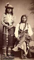 By the early 1800s, Comanche and Kiowa, Arapaho and southern Cheyenne, and Osage and Pawnee began bumping into each other on the buffalo range of modern Kansas and Oklahoma. After varying periods of conflict, truces were arranged and reduced the bloodshed, but also circumscribed each tribe's hunting territory. For the Comanche and Kiowa, the upshot was that their primary range became the region south of the Arkansas River, between the Sangre de Cristo and Sacramento mountain ranges on the west and the Cross Timbers on the east. This was excellent bison-hunting country, as far as it went. Winters were relatively mild and the bison had roamed as far south as the Rio Grande in historic times. But the southern range was also fragile, subject to extremes of heat and drought that scorched the grasses and dried up the water courses. In such conditions, the bison could leave the range altogether, as they appear to have done in the late 1780s, when for three successive years the Comanche had to go into the New Mexico pueblos and towns to beg for corn. Tree ring data appear to validate Kiowa calendars that indicate long periods of diminished rainfall between 1845 and 1875. The calendars note several summers of drought or dust during those years, and corresponding times of "little buffalo" or "no buffalo ." Only twice after 1840 do the calendars include the observation, "many buffalo." Within their restricted hunting territory, the Comanche and Kiowa also had to contend with transgressors, the New Mexican ciboleros who ventured onto the plains to hunt for bison. Although early Spanish expeditions had engaged in acts of wholesale slaughterone foray with the Jumano Indians in 1683 killed about 8,000 animals along the Concho River of Texasthe ciboleros appear not to have become an important phenomenon until the 1800s. One account in the 1830s estimated that the New Mexicans were killing a minimum of 10,000 to 12,000 bison annually. Their activities angered the Cheyenne, who drove them off their hunting grounds in the 1850s. This in turn brought them into confrontations with the Comanche and Kiowa after the Civil War, when they were reported to be having such a significant effect on the bison herds on the Llano Estacado that Army commanders in New Mexico considered banning their hunts. The uncertain political status of Texas and the other former Confederate states at war's end offered perhaps the last best hope for the Plains tribes to maintain their traditional way of life. In the fall of 1865, several Comanche and Kiowa leaders entered into what became known as the Treaty of the Little Arkansas River. Representatives of the government of the United States pledged to set aside a huge reserve that comprised most of the western half of modern Oklahoma, all of the Texas panhandle, and the remainder of the Llano Estacado east of the Texas-New Mexico border. The Texas portion of the reserve had been land that few white men had wanted to cross, much less own, but it had also been state land, outside the control of the U.S. government. Within two years the government reneged on the treaty, obtained the signatures of Comanche and Kiowa leaders on the new Treaty of Medicine Lodge Creek, and reduced the reserve to only six per cent of its original size. All that remained was a corner of the designated "Indian Territory." The substantial portion of the bison range that would at least in theory have been off limits to whites was left open to the commercial slaughter that touched off the Red River War of 1874-1875. The last of the independent Comanche, Kiowa, and Kiowa Apache surrendered to reservation life in 1875. Some of the Lipan and Mescalero bands held out in northern Mexico until the early 1880s, when Mexican and U.S. Army forces drove them onto reservations or into extinction. The 1890 Census showed 1,598 Comanche at the Fort Sill reservation, which they shared with 1,140 Kiowa and 326 Kiowa Apache. The Fort Stanton reservation in New Mexico had 473 Mescalero and 40 Lipan. Few individuals from the once-great forest and prairie village groups had survived in Indian Territory, 536 of the East Texas Caddo and 358 of the Wichita. |  Plains Indian fleshing tool with serrated metal edge, used for butchering large game. Courtesy Panhandle Plains Historical Museum Collection. Photo by Jeff Indeck. |  Four Apache Indians huddle in foreground of what is identified as an Arapoho hunting camp, ca. 1867-1874. Note meat hanging over drying racks. During the 1860s and 1870s, Indians competed not only with other tribes for buffalo but with Anglo hunters who swarmed over the Plains taking adavntage of the lucrative hide market. Photo courtesy of the Center for American History, Caldwell Collection (#CN 10189), The University of Texas at Austin. Click to view full image. |  Rich in imagery, a page from a circa 1890s Kiowa diary, drawn on a soldier's target practice book, indicates sweeping changes on the frontier. Note soldiers, wagon trains, flags, and Longhorn cattle dominating the scene with few tipis and other Indian symbols. Silver Horn Kiowa drawing, courtesy National Anthropological Archives, Smithsonian Institution (NAA INV 09063724). Click for full image. |  Quanah Parker, Quahahda Comanche chief. Quanah's band would be the last of the Comanche to submit to white dominion. |