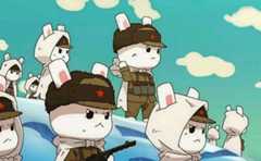 如果说,《那年那兔那些事儿》的原漫画比较粗糙,但也相对专业,其中一些“梗”只有军事迷才能看懂;在成为动画片后,它的内容变得非常平易近人,且兼顾了娱乐与煽情,甚至能将两者融为一体。比如,抗美援朝的志愿军兔子在暴风雪中挺立的画面,伴随着这样的旁白:“我们在这里吃炒面配雪,是为了祖国的亲们,能为甜咸豆腐脑战上十页。”